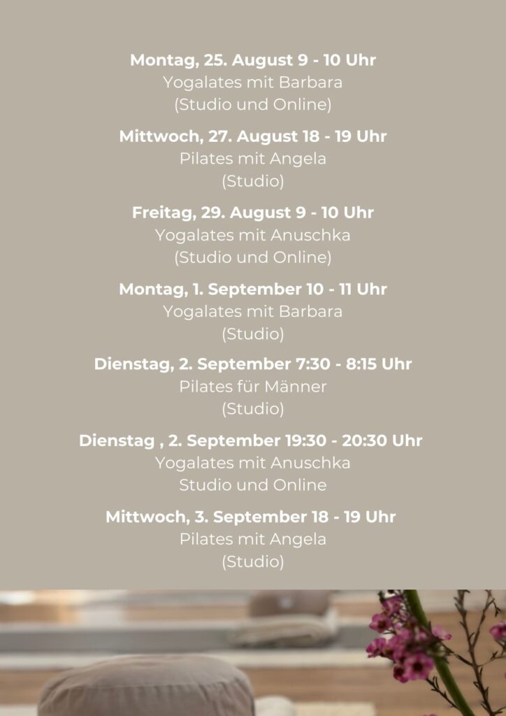 Weitere Bereiche rund um Körper, Geist, Seele. Rund um Ernährung, Prävention begeisterten mich und mein Team zunehmend. Ayurveda, Yoga Nidra, Yin Yoga, verschiedene Entspannungstechniken wie autogenes Training. Unser Kursangebot baute sich aus. Schon lange unterrichteten wir nicht mehr ausschließlich klassisches Pilates. Als mir im Herbst 2022 im selben Hinterhaus, aber eine Etage höher eine größere Fläche mit kleiner Küche und Büro angeboten wurde, musste ich nicht allzu lange überlegen Das war genau das, was zu meiner Vision passte.